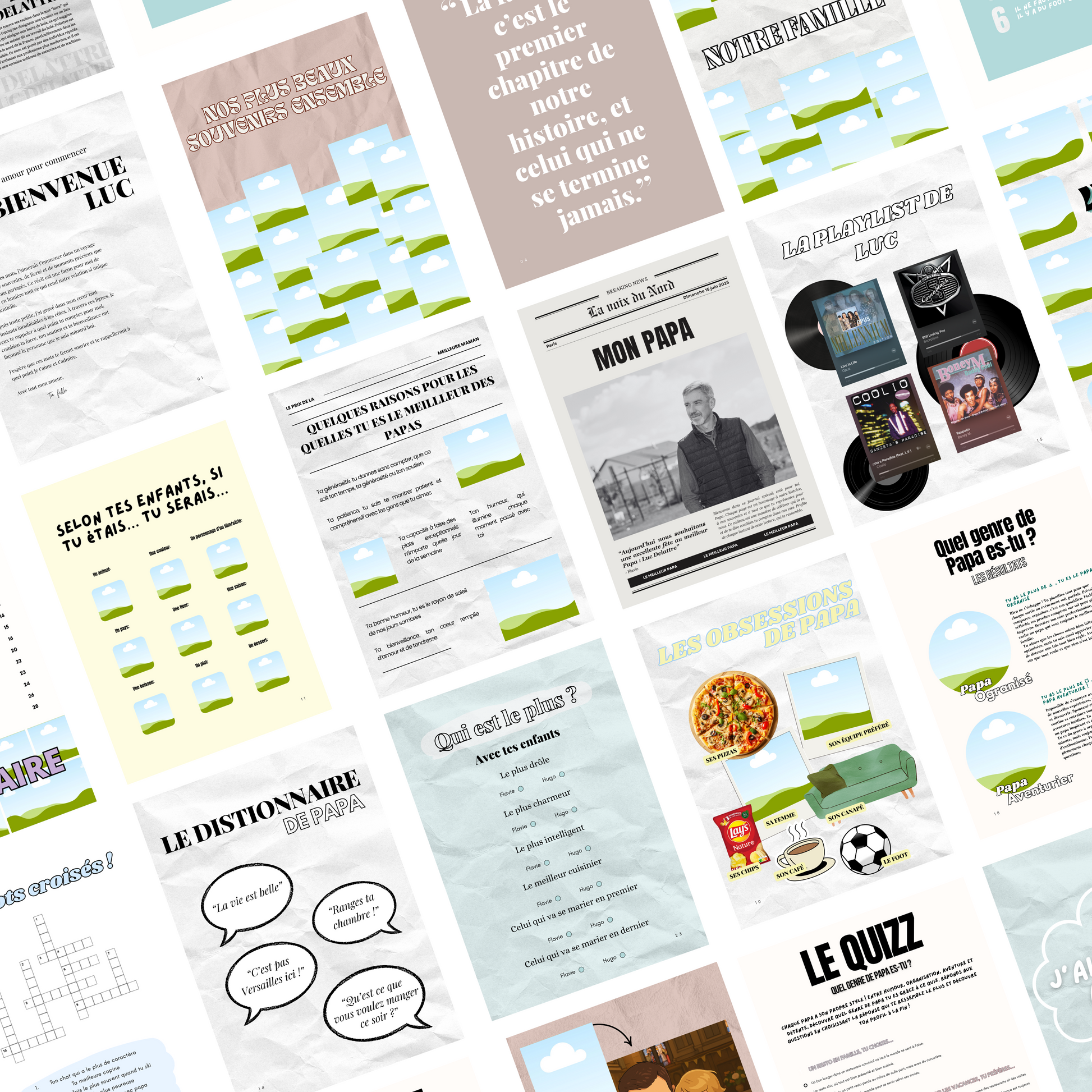 Offrez à votre Papa un moment d’émotion et de créativité avec ce template de journal personnalisable dédié aux papas. Que ce soit pour célébrer la fête des pères, un anniversaire ou simplement immortaliser des instants précieux du quotidien, ce modèle vous permet de créer un magazine unique, à son image.